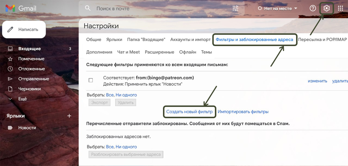 2. В меню слева открыть вкладку «Фильтры», затем кликнуть на «Добавить фильтр»